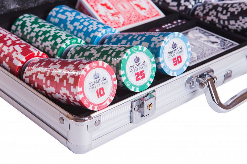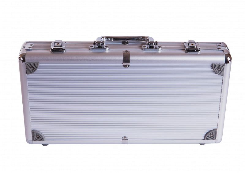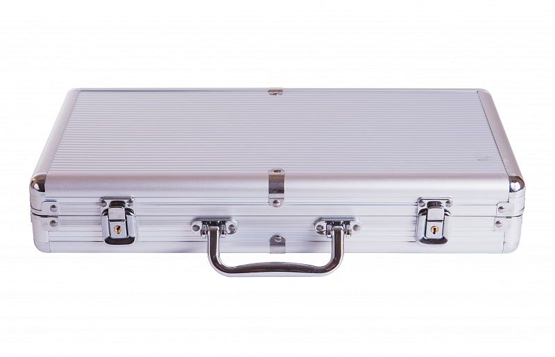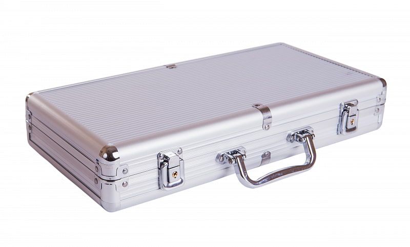 - Надёжный алюминиевый кейс с замком для хранения фишек и карт