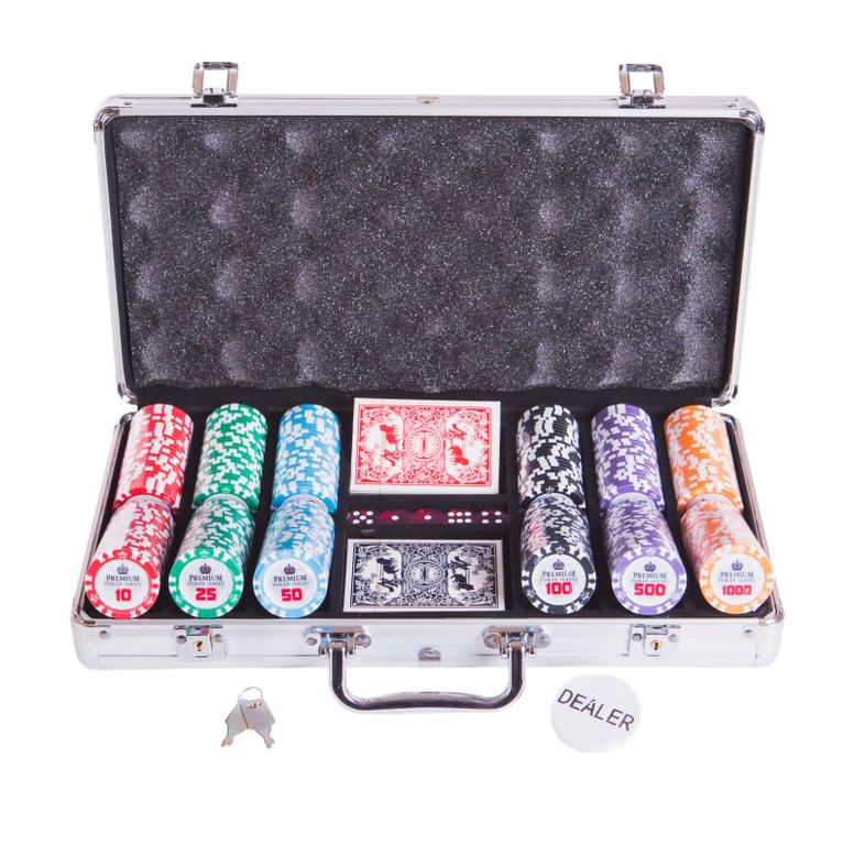 - 300 фишек с металлическим сердечником внутри, весом 11,5 грамм