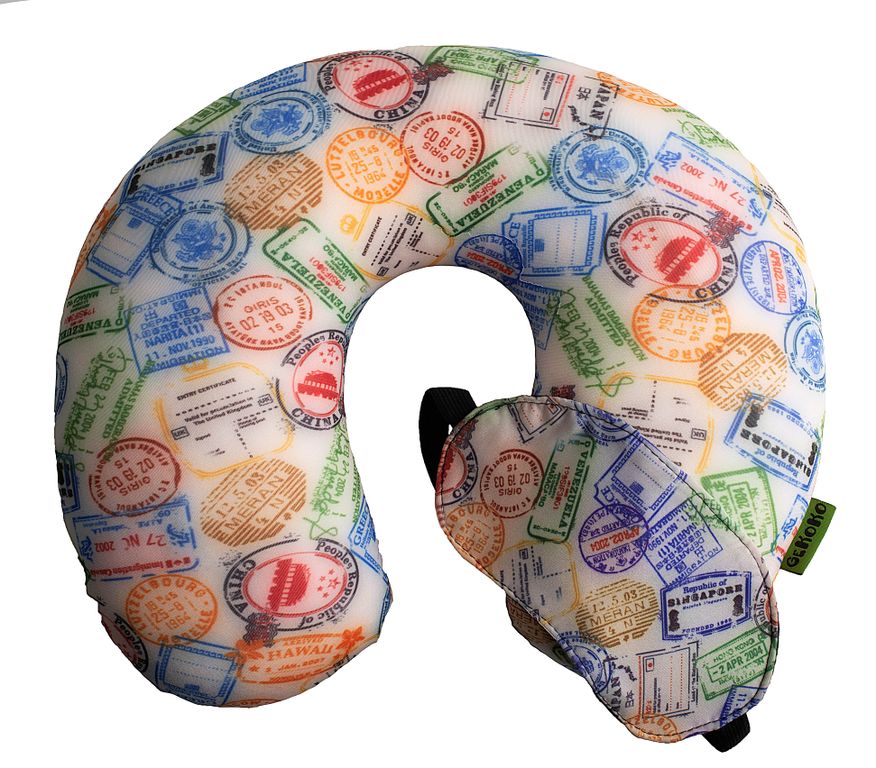 Дорожная подушка-подголовник антистресс "Печати + маска для глаз"