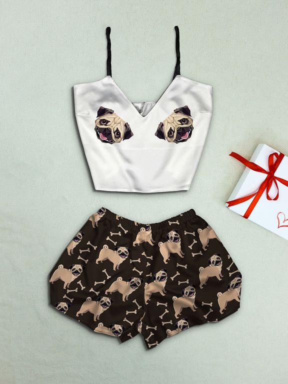 Шелковая пижама "Мопсы"